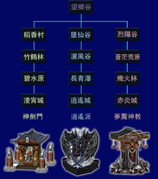 5、门派地图路线与圣石样貌图: