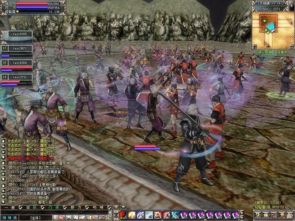 随着《十二之天贰》结义封测的开启,数以万计的武侠爱好者如潮水一般势不可挡地涌入崭新的游戏世界。在游戏中玩家从冰封凄美的逍遥城到花红草绿的碧水原、从红云密布的赤炎城到惊心动魄的天绝镇。侠客们结交天下的好友,与各种各样的魔物战斗,积聚自己的智慧和力量,建立自己的门派,成为一方大豪。正因为《十二之天贰》出色的游戏性,才使结义封测甫一开启就有无数玩家蜂拥而至!无论是各大主城,还是烈阳谷、长青瀑、竹鹤林等练级地带,到处都是热情的玩家,大家纷纷投入到这个精彩缤纷的崭新武侠天地!